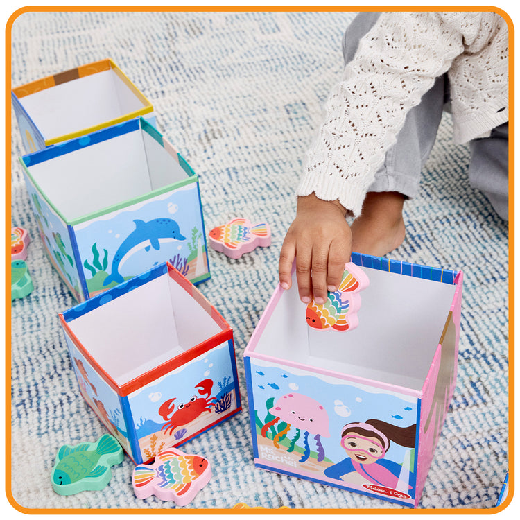 Play and learn with popular educator Ms. Rachel™! Stack, sort, match, count, and learn with this fun and educational Melissa & Doug play set for toddlers and preschooler two and older. Themed after Ms. Rachel’s popular “Bubble, Bubble, Pop!” song, the five sturdy cardboard nesting cube “fish tanks” also stack into a fun tower. The sides of each cube include numerals, the corresponding number of fingers, colorful fish to count, and underwater scenes. Sort 15 wooden play fish by matching them by color and number and dropping them into the blocks! The Melissa & Doug Ms. Rachel™ play set includes a special bonus Learning Card with play ideas and skill-building tips for caregivers. These Melissa & Doug toys are toddler learning toys, designed by Ms. Rachel™ and developmental experts, to support all children through their ages and stages, from 2-5+ years. Ms. Rachel™ toys are ideal newborn toys, toddler toys, preschool toys, and wooden toys. From baby shower gifts to baby essentials, these products help babies and families learn, bond, and thrive. Ms. Rachel™ is a real teacher and passionate educator, with two master’s degrees in education, who creates research-based videos and products to support learning for littles. This product is certified by the Forest Stewardship Council. FSC certification ensures that products come from responsibly managed forests that provide environmental, social, and economic benefits, and that forests are protected for future generations. Please note that FSC certification applies to new inventory only (FSC C156584)